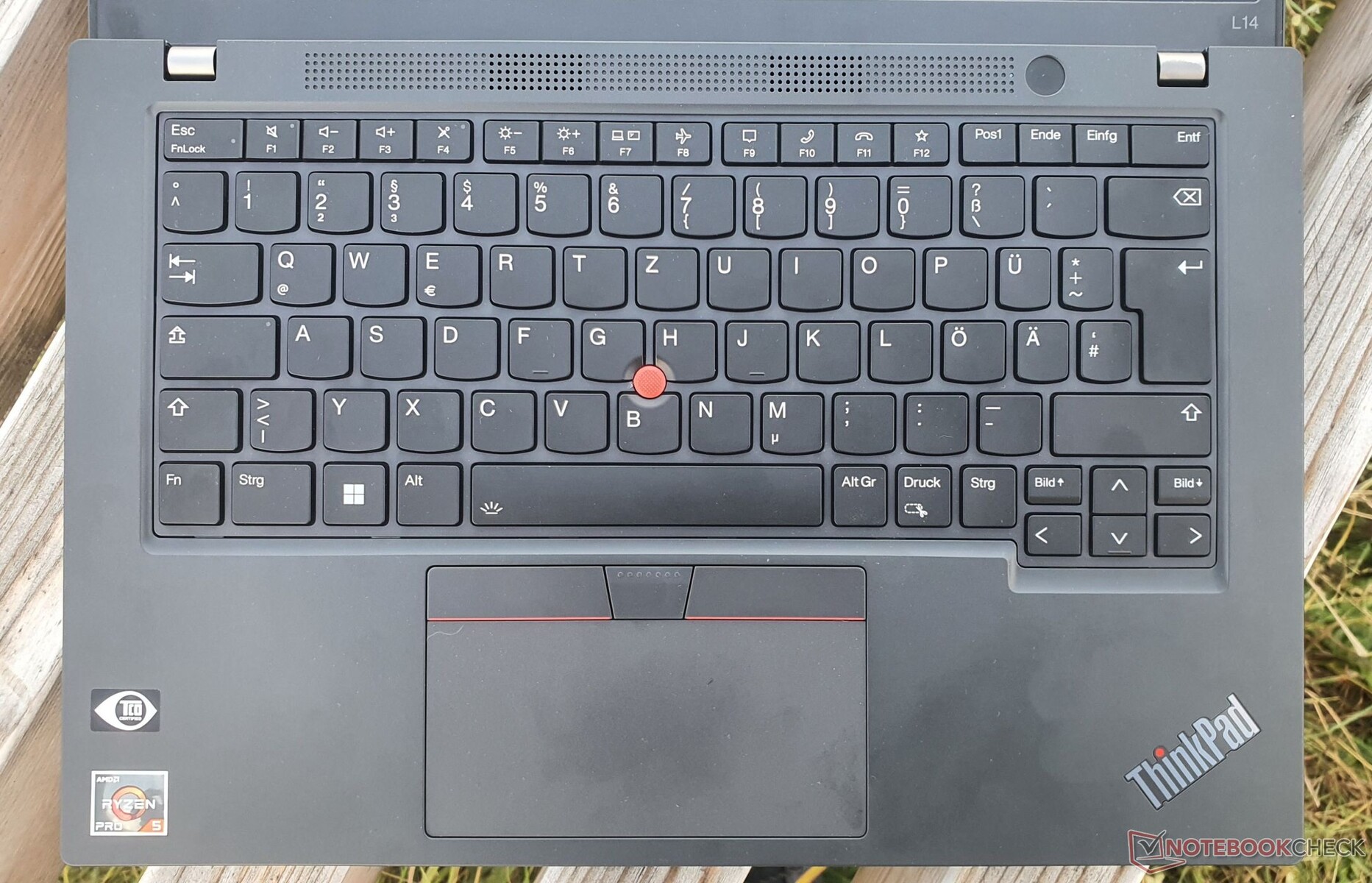 El ThinkPad L14 ha tenido un recorrido de tecla más corto de 1,5 mm (0,06") desde la primera generación. Esto significa que la serie E sigue siendo la única opción si prefiere un recorrido de las teclas de 1,8 mm (0,07"). El teclado de seis filas de ancho completo es muy cómodo, rápido y silencioso para escribir.