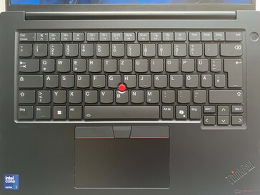 Para los estándares actuales, el clickpad de 11,5 x 6 cm del portátil no es especialmente grande, ya que también tiene que hacer sitio a los botones adicionales para el TrackPoint. Sin embargo, su tacto es agradable y suave; sólo el propio ruido del clic es un poco demasiado alto. Por supuesto, también puede utilizar el TrackPoint como alternativa, que funciona muy bien (una vez que se acostumbra a él). Las teclas dedicadas causaron muy buena impresión en nuestro dispositivo de prueba gracias a sus clics amortiguados y de alta calidad, y no notamos holgura alguna.