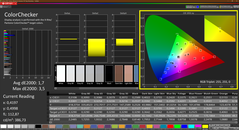 El espacio de color sRGB está suficientemente cubierto con un 95,7%, lo que debería permitir un procesamiento profesional de las imágenes en el área digital. Sin embargo, incluso después de nuestra calibración, el color azul sigue desviándose del objetivo con un valor DeltaE 2000 de 3,5, aunque pudimos remediar el tinte azul. Como siempre, puedes descargar nuestro perfil de color calibrado desde el enlace anterior, a la derecha del gráfico de distribución de brillo.