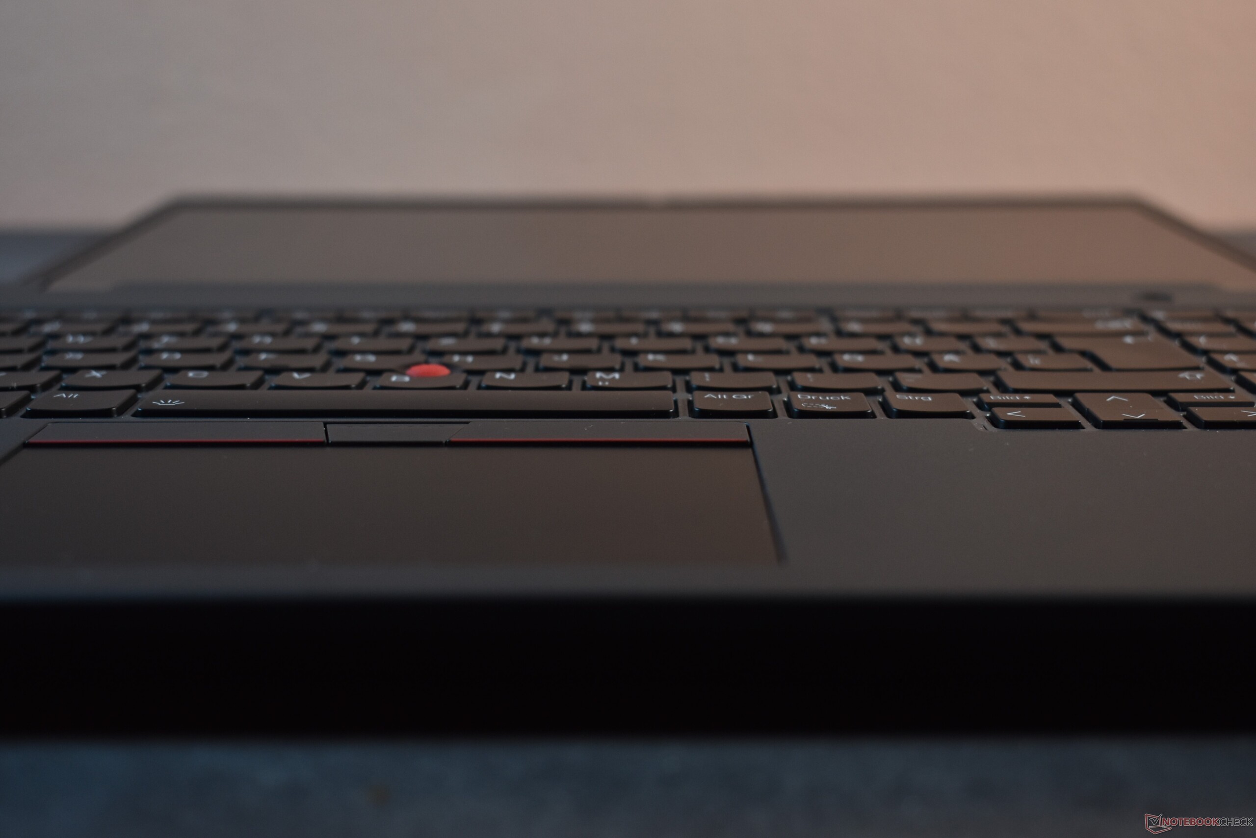 Como alternativa al touchpad, dispone del TrackPoint rojo situado en el centro del teclado. El puntero, con su tapa de goma roja, puede utilizarse para dirigir el puntero del ratón si el usuario aplica presión sobre la tapa. Las tres teclas dedicadas del ratón situadas encima del touchpad son para el TrackPoint, y el botón central está ahí para el desplazamiento. El capuchón requiere que los usuarios del touchpad se acostumbren a él, pero ofrece ventajas al realizar operaciones de arrastrar y soltar, en espacios reducidos como trenes o aviones o cuando se utiliza con guantes. En el ThinkPad T16 G2, funciona sin problemas. En los ajustes de Windows, hay una configuración especial para el TrackPoint.