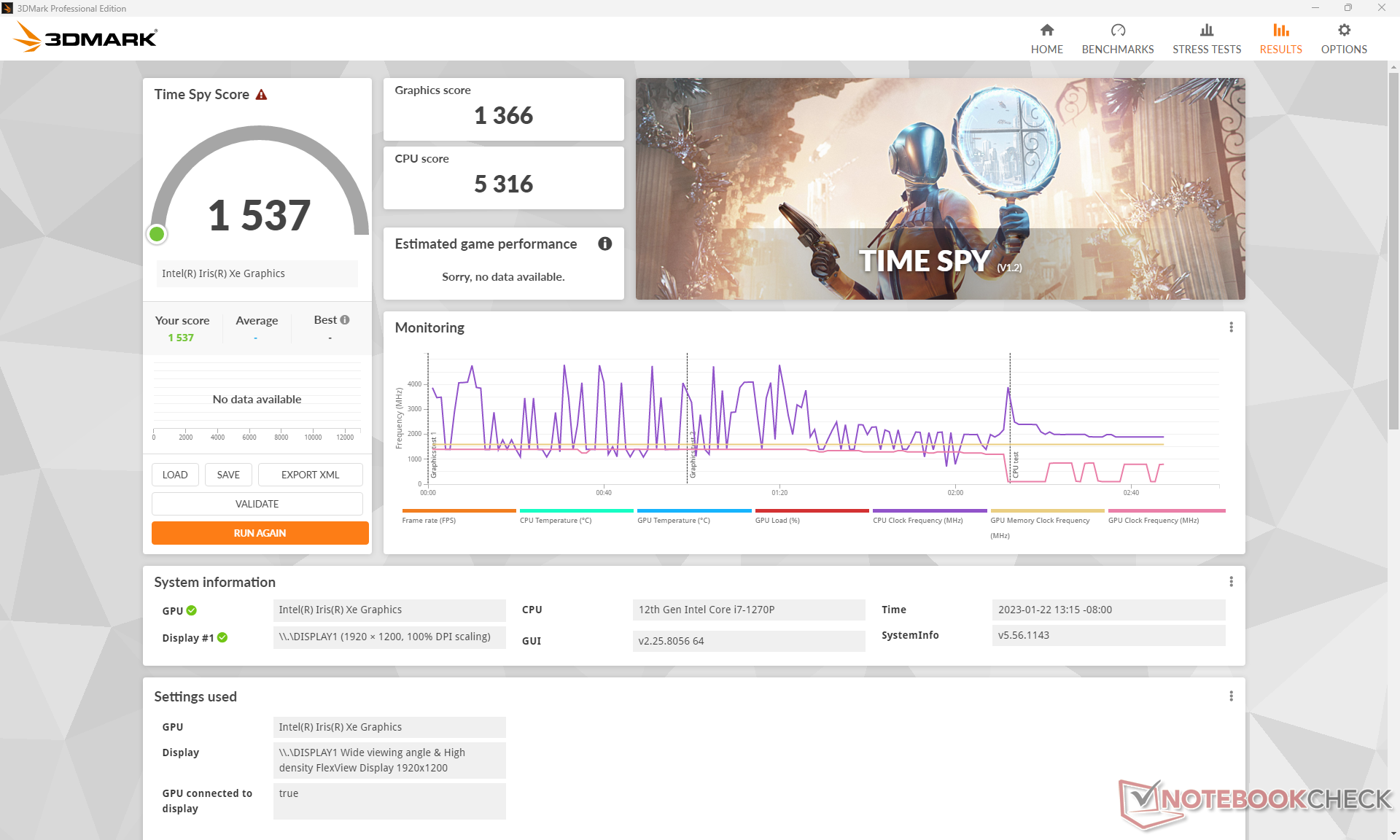 La velocidad de reloj y la temperatura de la GPU en funcionamiento Witcher 3 se estabilizarían en 998 MHz y 67 C, respectivamente, frente a los 1100 MHz y 58 C del modelo más pequeño HP Dragonfly Folio 13.5 G3. Funcionar con batería no parece afectar al rendimiento.