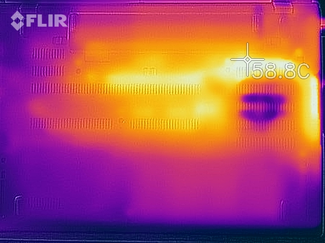 Bajo carga, las temperaturas de la carcasa del ThinkPad T580 alcanzan los 54,6 °C (130,3 °F). La marca crítica de 50 °C (122 °F) se sobrepasa sobre todo en la parte inferior. El área de descanso de la muñeca también se calienta, pero no tanto. Se alcanza una temperatura de 37 °C (98,6 °F) en el lado izquierdo del reposamuñecas. La prueba de estrés con "The Witcher 3" confirma este resultado. Sin embargo, las temperaturas que medimos durante esta prueba de esfuerzo fueron algo más bajas.