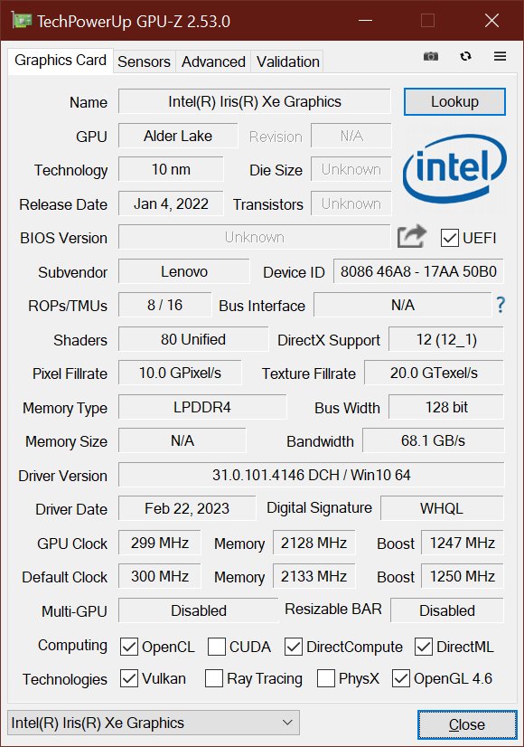 | Lenovo ThinkPad X13 Yoga G3 21AW003UGE i7-1265U, Iris Xe G7 96EUs, Samsung PM9A1 MZVL2512HCJQ, IPS LED, 2560x1600, 13.3" | Lenovo ThinkPad X13 Yoga G2 i7-1165G7, Iris Xe G7 96EUs, WDC PC SN730 SDBQNTY-1T00, IPS LED, 2560x1600, 13.3" | HP Elite Dragonfly Folio 13.5 G3 i7-1265U, Iris Xe G7 96EUs, Samsung PM9A1 MZVL2512HCJQ, IPS, 1920x1280, 13.5" | Dell Latitude 9330 i7-1260U, Iris Xe G7 96EUs, , IPS, 2560x1600, 13.3" | Lenovo ThinkPad X1 Yoga G7 21CE002HGE i7-1270P, Iris Xe G7 96EUs, Samsung PM9A1 MZVL2512HCJQ, IPS, 1920x1200, 14" | Medio Intel Iris Xe Graphics G7 96EUs | Media de la clase Convertible | |