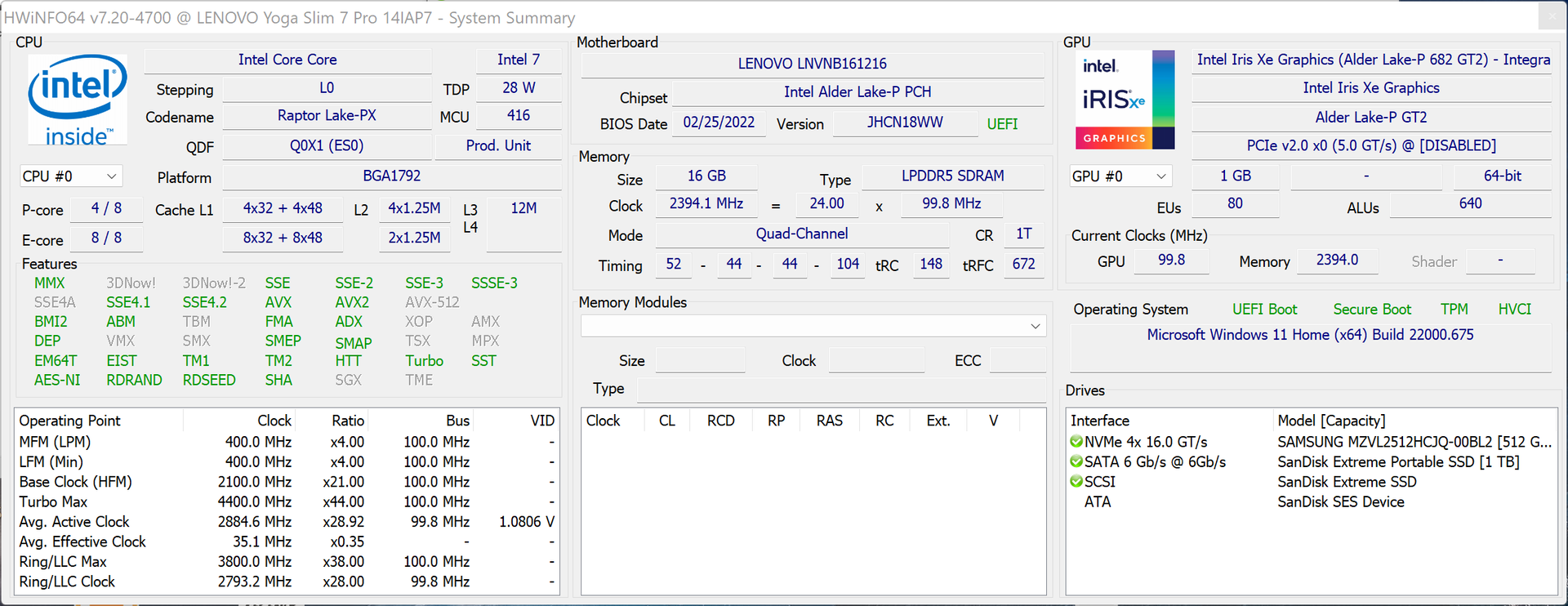 | Lenovo Yoga Slim 7i Pro 14IAP G7 i5-1240P, Iris Xe G7 80EUs, Samsung PM9A1 MZVL2512HCJQ, IPS, 2880x1800, 14" | Samsung Galaxy Book2 Pro 13 NP930XED-KA1DE i5-1240P, Iris Xe G7 80EUs, Samsung PM991a MZVLQ256HBJD, OLED, 1920x1080, 13.3" | LG Gram 14Z90P-G.AA79G i7-1165G7, Iris Xe G7 96EUs, SK Hynix PC601 1TB HFS001TD9TNG, IPS, 1920x1200, 14" | Lenovo Yoga Slim 7 Pro 14 OLED Ryzen 9 R9 5900HS, GeForce MX450, SK Hynix PC711 1TB HFS001TDE9X084N, OLED, 2880x1800, 14" | Asus ZenBook 14X OLED UX5400EA-L7154W i7-1165G7, GeForce MX450, Intel Optane Memory H10 with Solid State Storage 32GB + 1TB HBRPEKNX0203AH(L/H), OLED, 2880x1800, 14" | Lenovo Yoga Slim 7 Pro 14ACH5 R9 5900HX, Vega 8, SK Hynix PC711 1TB HFS001TDE9X084N, IPS, 2880x1800, 14" | Medio Intel Iris Xe Graphics G7 80EUs | Media de la clase Subnotebook | |