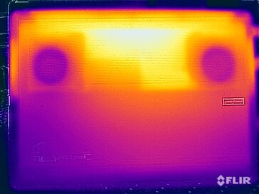 El desarrollo de la temperatura ya era un gran problema en nuestra unidad de prueba del Creator Z16Pcon el Core i9 y la RTX 3080 Ti. El CreatorPro con el Core i7 más débil y la RTX A3000 lo hace ligeramente mejor, pero sigue siendo problemático, aunque también usa un sistema de refrigeración por cámara de vapor. Subjetivamente, el problema también aumenta por la carcasa metálica. Con tareas menos exigentes, no hay limitaciones, pero ya después de algunas breves fases de carga de sólo unos minutos, la parte superior de la unidad base se calienta mucho, y usar el teclado se vuelve realmente incómodo. Además, bajo ninguna circunstancia debe hacer funcionar el dispositivo sobre su regazo bajo carga, ya que medimos casi 70 °C en la parte inferior de la carcasa. El sistema de refrigeración es simplemente demasiado débil en general, incluso para los componentes más lentos.