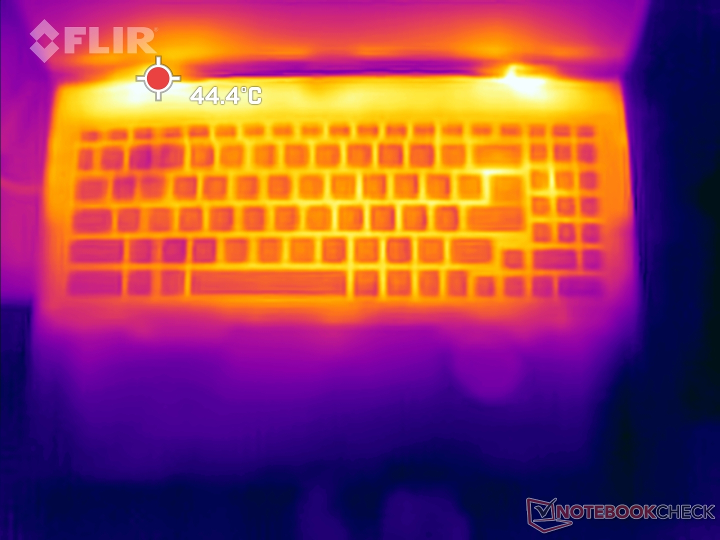 Las zonas WASD, touchpad y reposamanos se mantuvieron relativamente frías durante las pruebas de estrés.