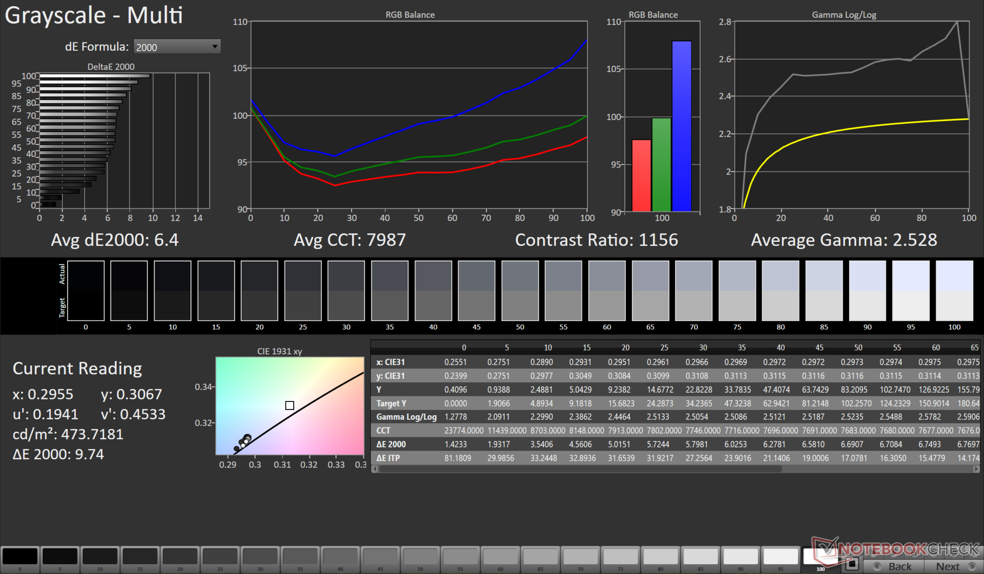ΔE Greyscale Calman: 6.4 | ∀{0.09-98 Ø5}