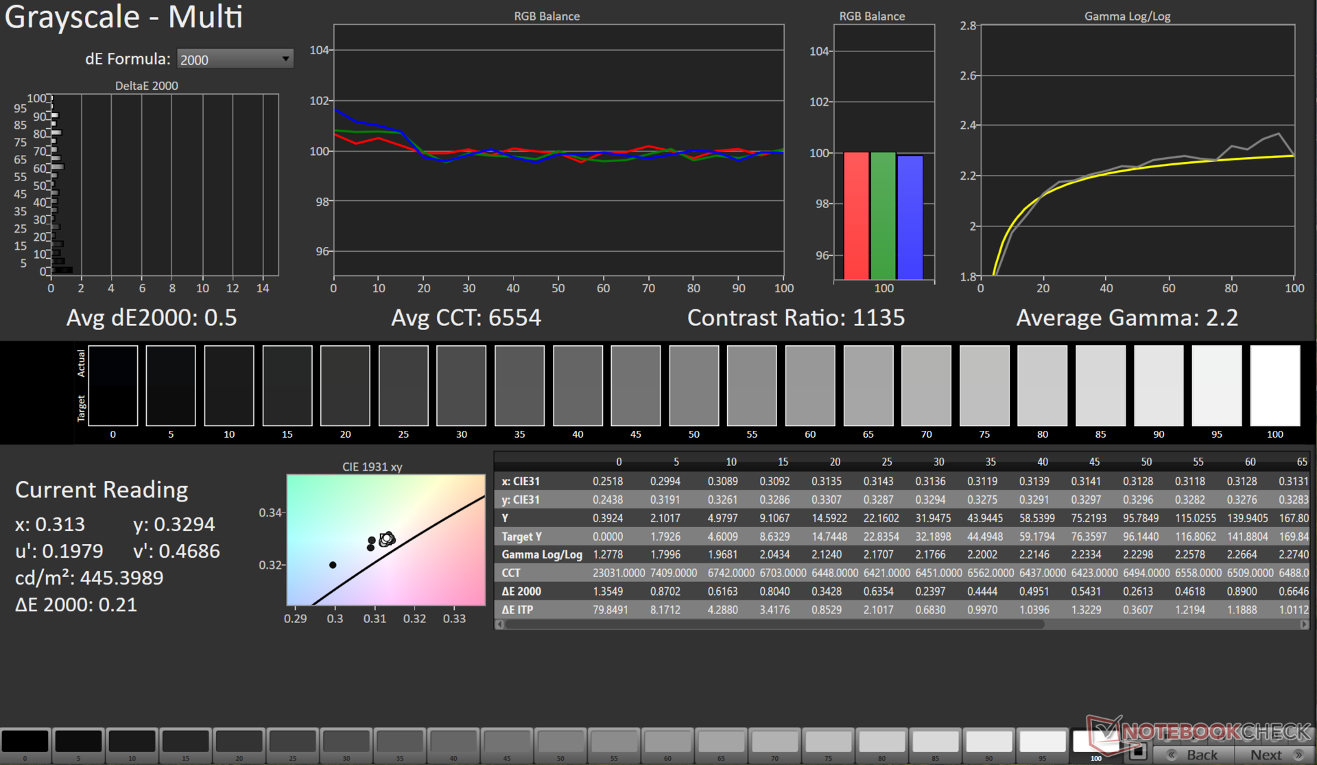 La relación de contraste medida de 1.180:1 se presta a una experiencia visual subjetivamente buena con una cobertura casi completa de la gama de colores sRGB y Display P3.