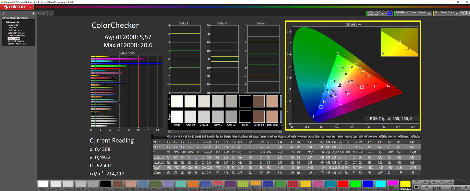 ΔE ColorChecker Calman: 5.57 | ∀{0.5-29.43 Ø4.78}