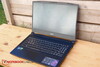 La parte inferior es de plástico más blando. La base es relativamente resistente a la torsión, pero emite algunos crujidos. Por el contrario, la tapa es mucho más fácil de doblar y emite un sonido chirriante. Los bordes de la pantalla son estrechos en los laterales, pero bastante anchos en la parte superior e inferior para los estándares actuales.