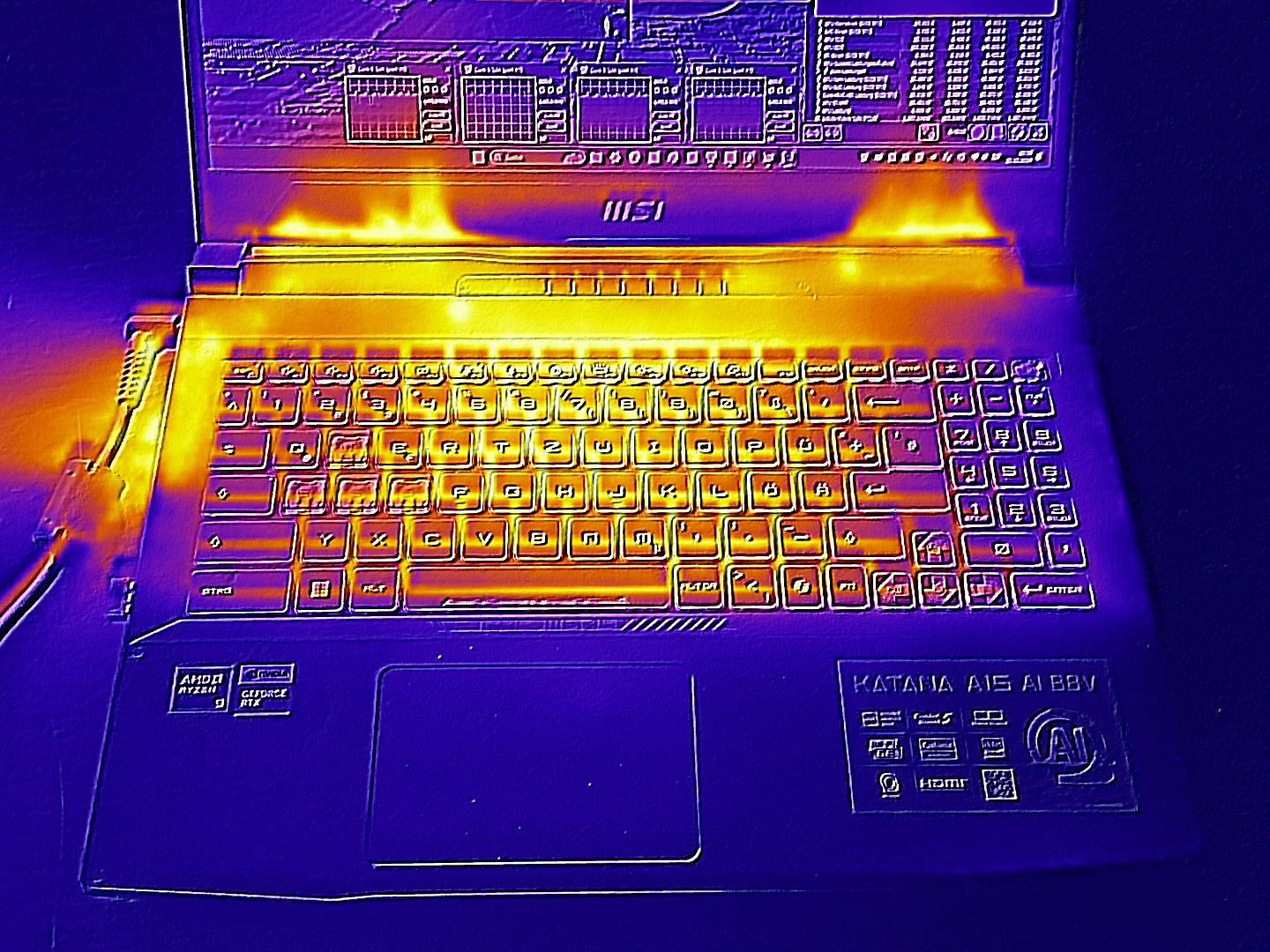 Los portátiles para juegos tienden a calentarse significativamente cuando se ejecutan aplicaciones con un uso intensivo de gráficos. Es poco probable que esto sorprenda a nadie. El Katana A15 alcanza un máximo de 47 °C en la parte superior y 46 °C en la inferior, lo que lo hace algo incómodo para interactuar con él, pero sigue siendo más frío que algunos de sus competidores (eche un vistazo a la tabla).