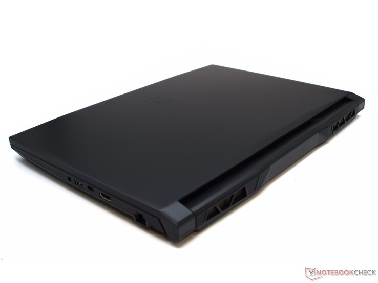 El MSI Katana no ofrece mucho en términos de conexiones. El puerto USB-2.0 del lado izquierdo muestra claramente que MSI recortó algunas esquinas en las conexiones. Otra equipación de la que carece es un lector de tarjetas o un puerto USB-C completamente equipado.