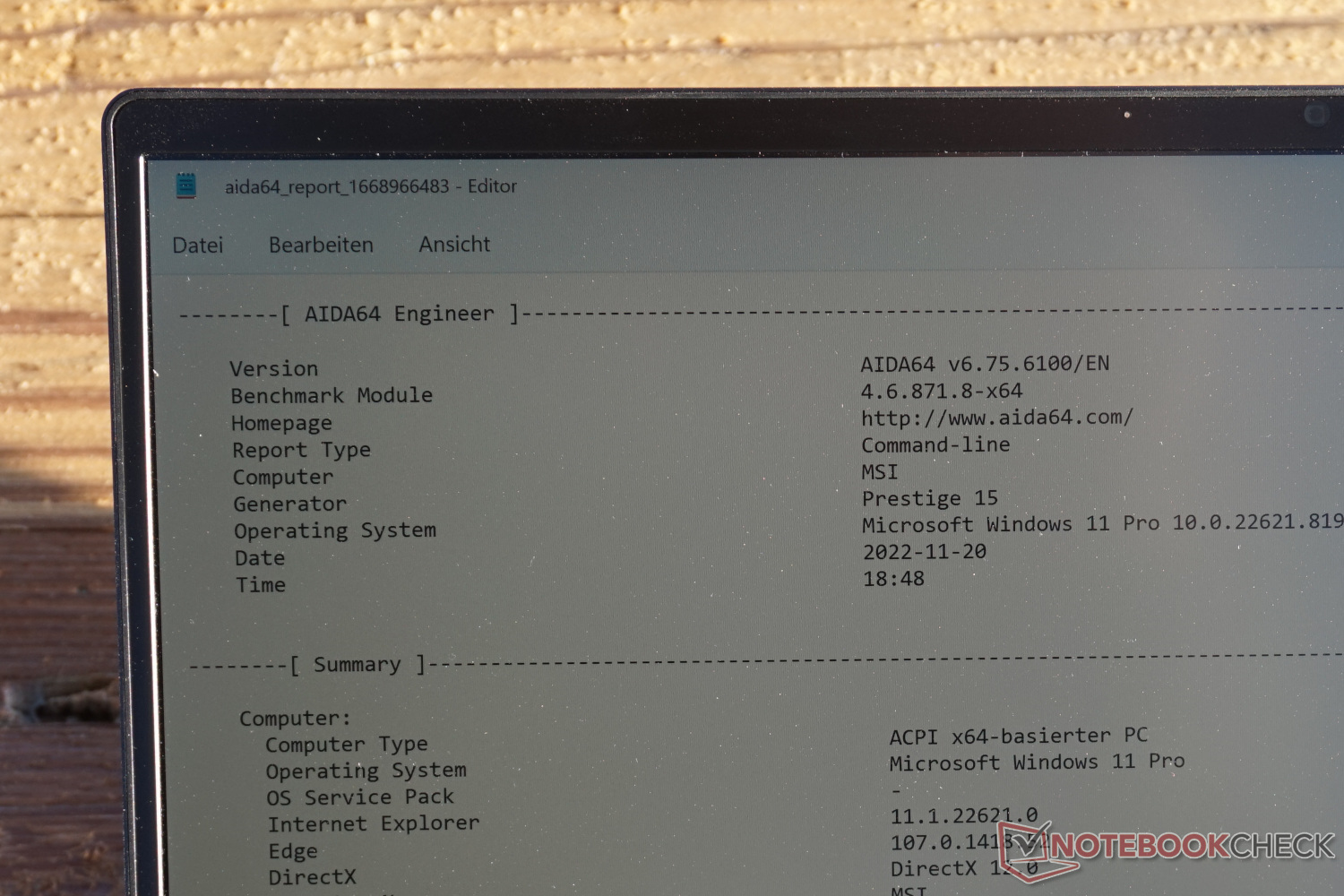 Sin embargo, la resolución 4K en un área que apenas es mayor que una hoja DIN A4 no parece realmente práctica. Windows recomienda un aumento del 250%, lo que parece realista. Incluso el 200% dificulta la lectura en la pantalla. Una pantalla de tamaño completo hace que trabajar en la Prestige 15 sea casi imposible. Además, es probable que muy pocos sean capaces de distinguir si la imagen mostrada está en FullHD o 4K porque los detalles son simplemente demasiado pequeños.