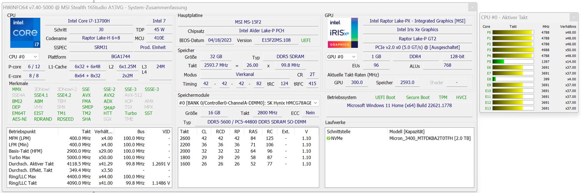 Sin embargo, en cuanto al precio, el MSI Stealth 16 Studio A13VG se encuentra en el segmento de gama alta. Pero, además de los componentes ya mencionados, cuenta con 32 GB de RAM DDR5 y un SSD con 2 TB de almacenamiento. Tampoco hay que olvidar la pantalla QHD+ de 16 pulgadas. Con su tasa de refresco de 240 Hz, está orientada directamente a la comunidad de jugadores.