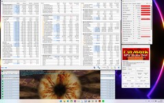 Utilizamos Prime95 y FurMark en funcionamiento continuo para simular la prueba de estrés. Representa un escenario extremo y sirve para comprobar la estabilidad del sistema a plena carga. En cuanto al procesador, el valor más alto que observamos fue de 97 °C, que se alcanzó nada más empezar. Durante un periodo de tiempo más largo, la temperatura de la CPU se estabilizó en torno a los 87 °C. En cuanto al adaptador gráfico, registramos un valor de punto caliente máximo de 91 °C. Con una media de unos 80 °C, vimos temperaturas considerablemente más bajas bajo carga. Esto significa que no se alcanzó el límite térmico de la tarjeta gráfica de (87 °C).