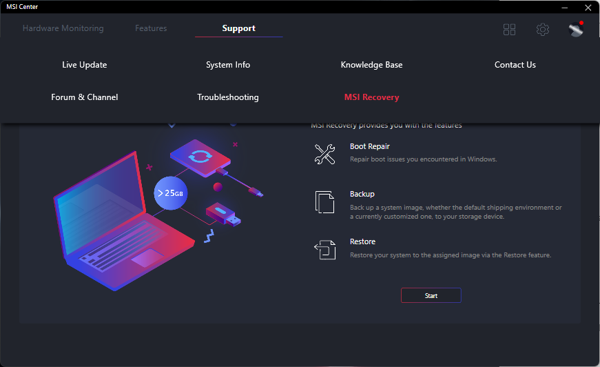 Los usuarios deben tener en cuenta que solo uno de los dos puertos USB-C del borde derecho es compatible con Thunderbolt, como en el GS76. Además, el puerto del adaptador de CA ha cambiado, por lo que los adaptadores de CA más antiguos no son compatibles.