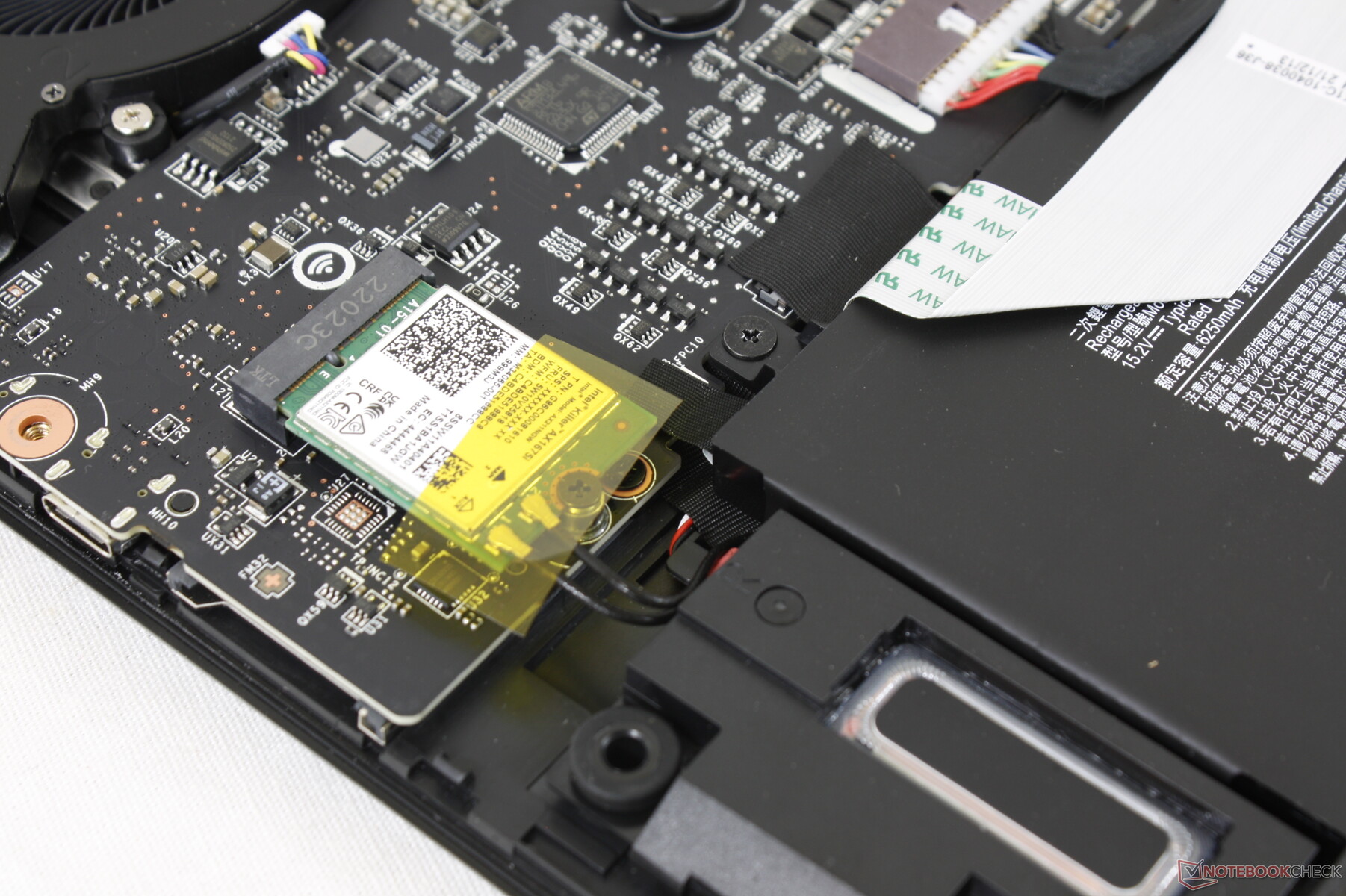 Una vez dentro, los usuarios tendrán acceso a 2 ranuras SODIMM, 2 ranuras SSD PCIe4 x4 2280 y el módulo WLAN extraíble. Las dos ranuras SODIMM están protegidas por su propia cubierta de aluminio.