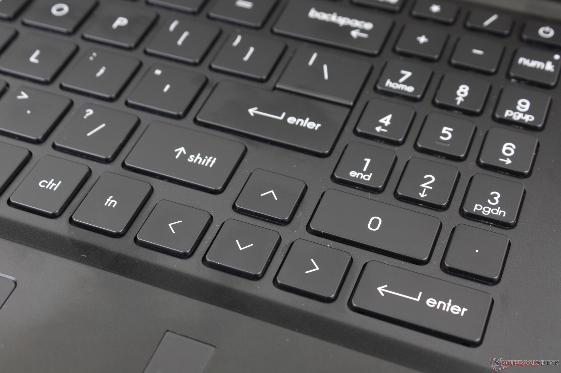 El tamaño de las teclas es el único inconveniente del teclado GS77. En particular, el teclado numérico, las teclas de flecha y la fila superior de teclas de función son mucho más pequeñas que las teclas QWERTY principales, por lo que su respuesta es notablemente más esponjosa y débil. Al menos las teclas de función del Blade 17 son del mismo tamaño que las teclas QWERTY principales para una mejor uniformidad.