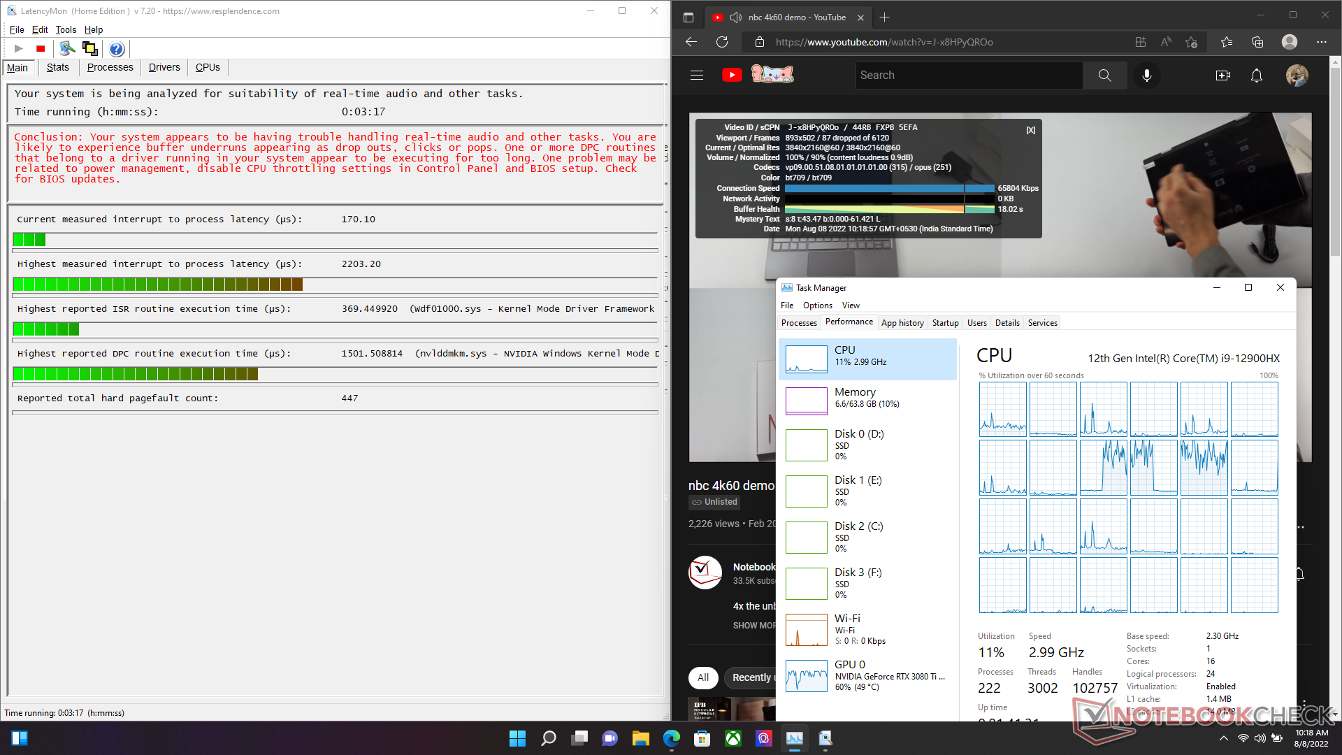La combinación de Core i9-12900HX y la GPU RTX 3080 Ti de 175 W para portátiles ofrece una gran potencia de procesamiento para casi cualquier carga de trabajo que le eches, siempre que no te importen las altas emisiones de calor y ruido.