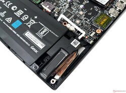 La batería de 99,9 WHr se puede retirar para su sustitución. La tarjeta WLAN Killer AX1675i, los SSD NVMe y la memoria DDR5 pueden actualizarse.