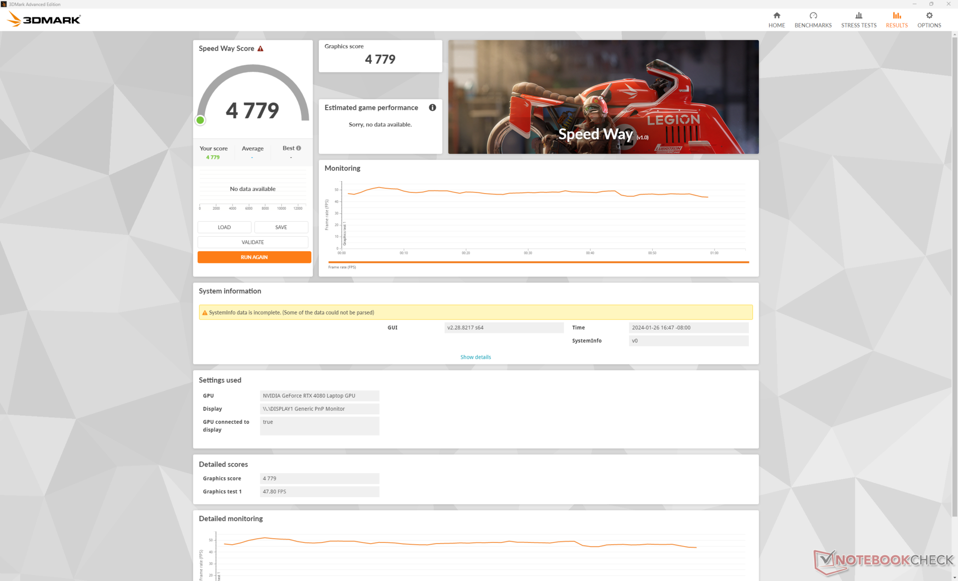El gran tamaño y los ruidosos ventiladores no son en vano, ya que el modelo destaca cuando se trata de rendimiento. Los 175 W de la GeForce GPU RTX 4080 es un 10% más rápida que la media para estar a la altura incluso de algunos portátiles que llevan la RTX 4090. Este hecho por sí solo probablemente atraerá a los cazadores de rendimiento a los que no les importe sacrificar un poco de portabilidad por esa potencia extra. El ceñido chasis también es rígido y con una tapa resistente, algo que no podemos decir de muchas alternativas más delgadas.