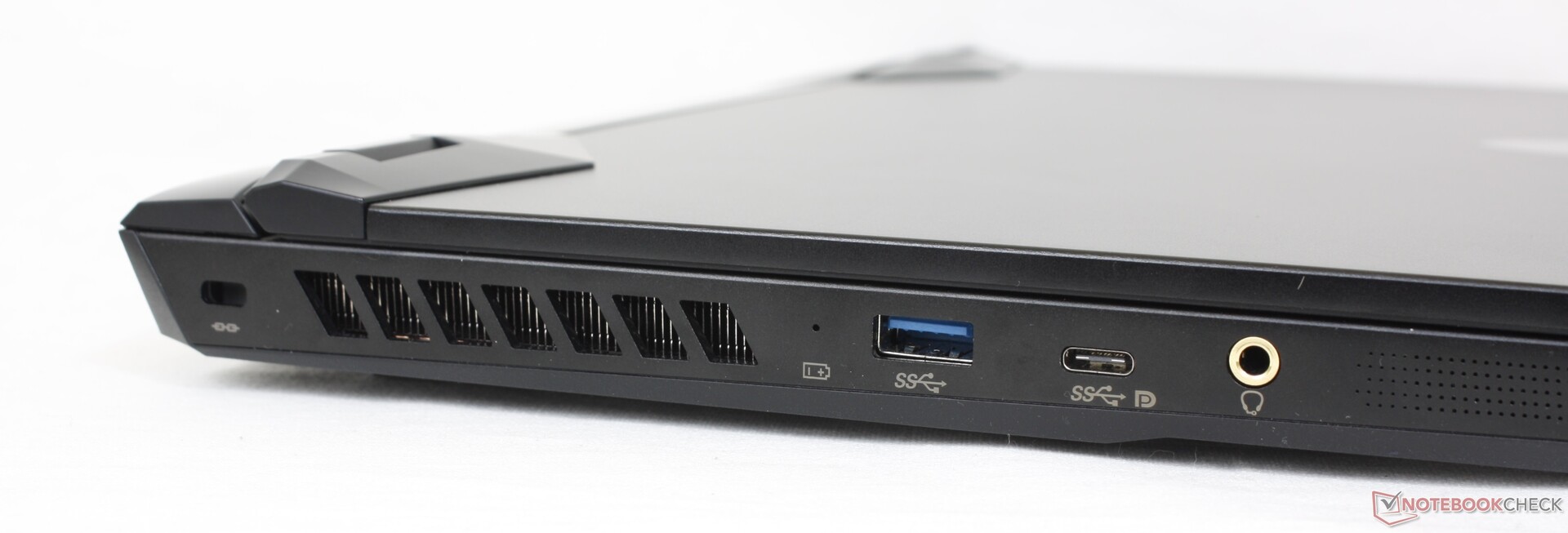Las opciones de puerto son ligeramente diferentes a las que se ofrecían en el GP66 Leopard. Por un lado, el puerto USB-C que estaba en la parte trasera del GP66 Leopard está ahora en el borde izquierdo para facilitar el acceso. Además, se ha añadido un mini-DisplayPort para aumentar la compatibilidad con los monitores externos que soportan la sincronización adaptativa