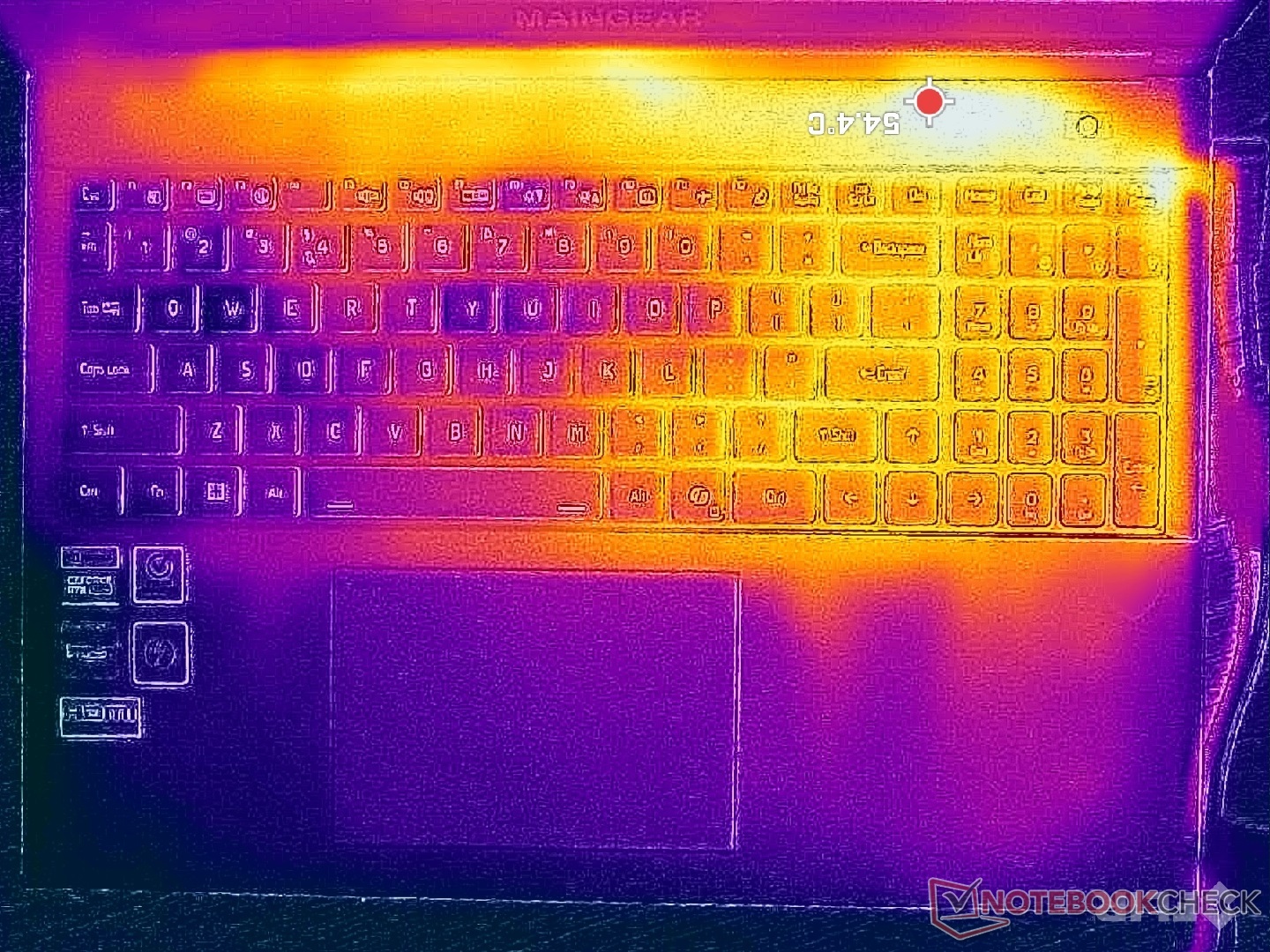 Además, la solución de refrigeración asimétrica significa que la mitad derecha del chasis o del teclado estará mucho más caliente que la izquierda. Esto contrasta con la mayoría de otros portátiles para juegos en los que las soluciones de refrigeración simétricas son habituales. Esto no es un gran problema ya que la mayoría de los juegos utilizan sólo las teclas WASD en la mitad izquierda del teclado, pero puede esperar una palma sudorosa si el juego exige entradas desde el teclado numérico.