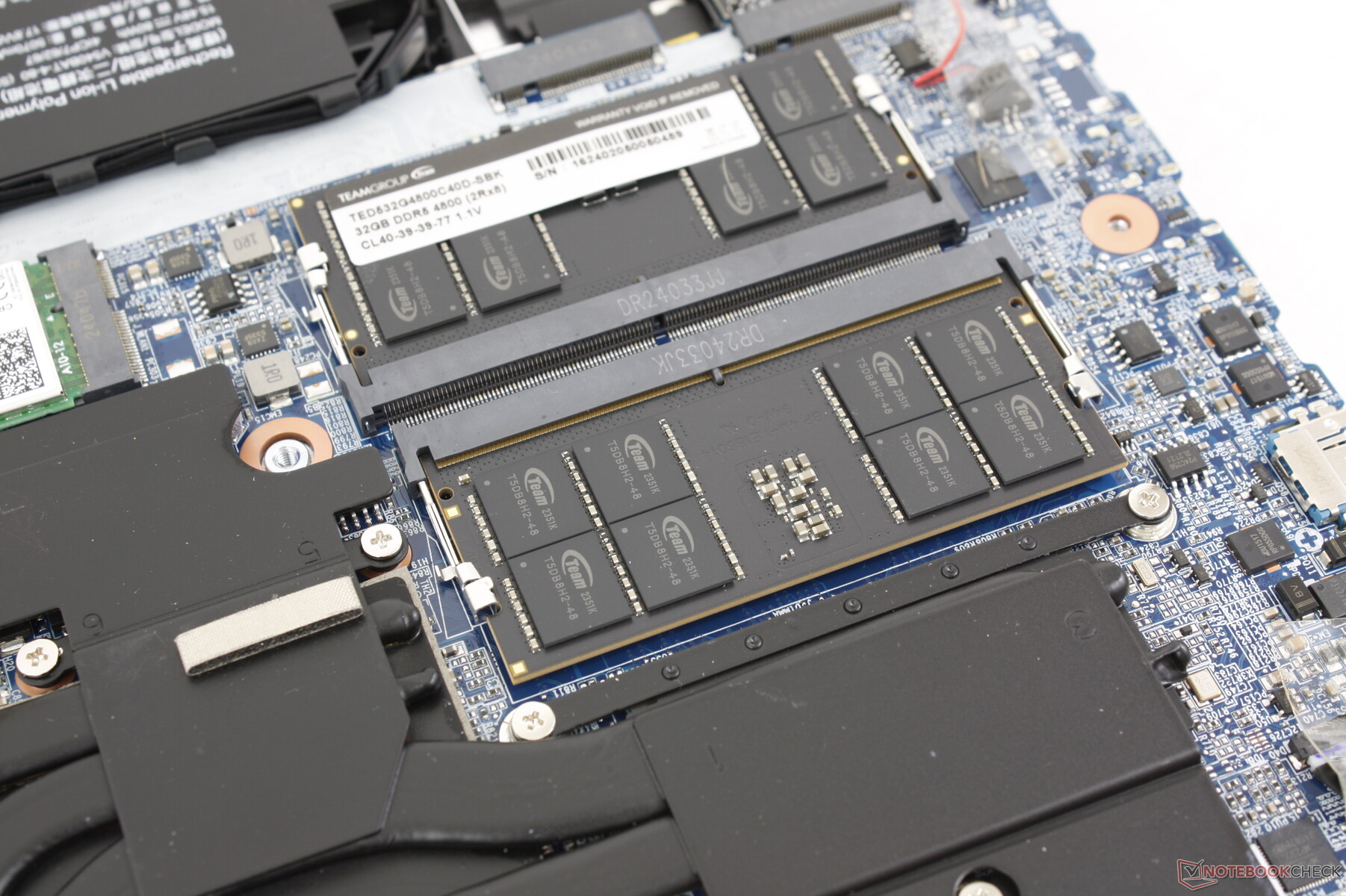 El panel inferior requiere algo de paciencia para retirarlo ya que está asegurado por 13 tornillos Phillips. Por lo demás, salta sin mucha resistencia para facilitar el acceso a dos bahías M.2 PCIe4 x4 2280, dos ranuras SODIMM, la batería y el módulo WLAN extraíble. Estas opciones son comparables a las del Razer Blade 16 a la vez que mejores que las del Alienware x16 R2 que no tiene RAM actualizable por el usuario en absoluto.