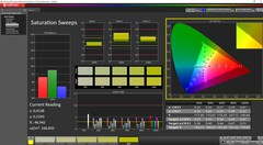 El panel más antiguo muestra claras debilidades en términos de cobertura del espacio de color, con una cobertura incluso de sRGB de sólo el 90% en el mejor de los casos. A pesar de sus buenos valores DeltaE, el panel puede resultar menos adecuado para los creadores de contenidos.