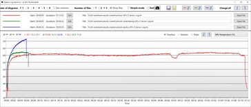 Gracias al agresivo sistema de refrigeración, las temperaturas superficiales son casi asombrosamente bajas. Incluso bajo carga máxima, apenas superan los 96,8 °F en modo juego (temperatura ambiente 64,4 °F). Aquí aún hay mucho margen para un sistema de refrigeración más silencioso.