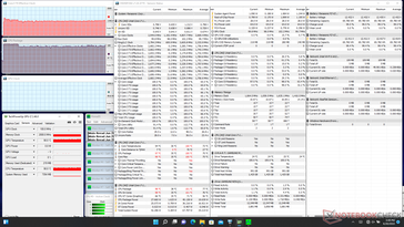 Cuando se ejecuta Prime95 para estresar la CPU, las velocidades de reloj y la temperatura del núcleo se disparan a 3,1 GHz y 100 C durante una fracción de segundo, respectivamente, antes de caer constantemente a 2,6 y ~95 C. La potencia del paquete de la CPU puede llegar a ser de 40 W durante el inicio de la prueba antes de estabilizarse en 28 W. Al ejecutar esta misma prueba en el Durabook S14I con una CPU Core i7-1165G7 resultaría en una temperatura estable del núcleo mucho más fría de 63 C, aunque a una velocidad de reloj más lenta de 1,8 GHz. Está claro que nuestro modelo Panasonic está favoreciendo el rendimiento de la CPU incluso si significa un procesador mucho más caliente en el proceso.