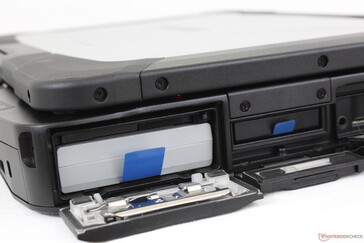 la capacidad de admitir no sólo una o dos, sino cuatro ranuras de expansión especializadas diferentes, proporciona al Toughbook 40 unas piernas más largas y una mayor versatilidad en su categoría. Si los módulos xPAK extraíbles no son prácticos para sus escenarios de uso, el atractivo del Toughbook 40 disminuye considerablemente. Alternativas como el Latitude 7424 Rugged Extreme son totalmente resistentes y más pequeños, aunque sin las capacidades de expansión del Panasonic.