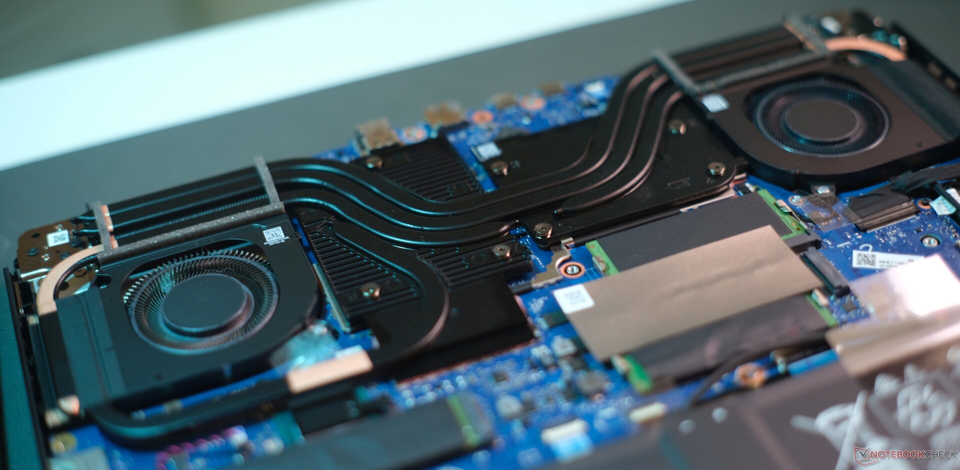 Su potente sistema de refrigeración ha sido adoptado casi 1:1 del Helios 16, lo que se traduce en bajas temperaturas internas y bajas emisiones de ruido (a más tardar cuando se utiliza el modo equilibrado) - y no a costa de ningún rendimiento. En el lado opuesto, sus grandes restricciones de potencia de GPU y CPU en modo batería son un poco exageradas.