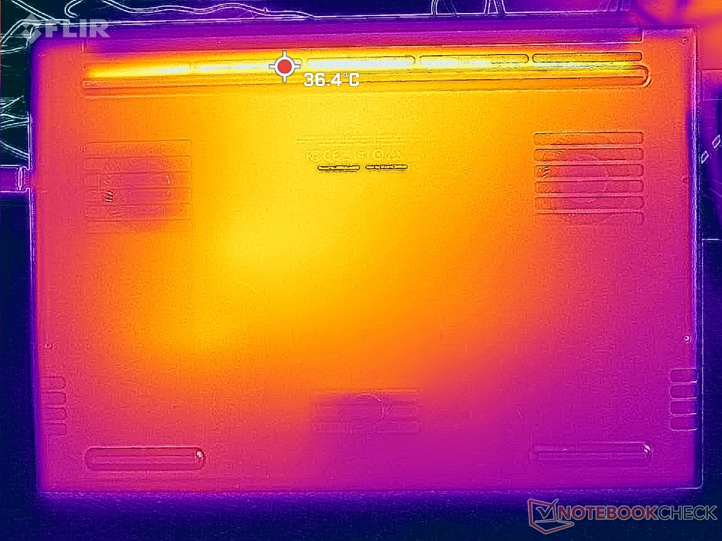 (+) Jugando a The Witcher 3, la temperatura media de la parte superior es de 28.9 °C / 84 F, frente a la media del dispositivo de 33.9 °C / 93 F.