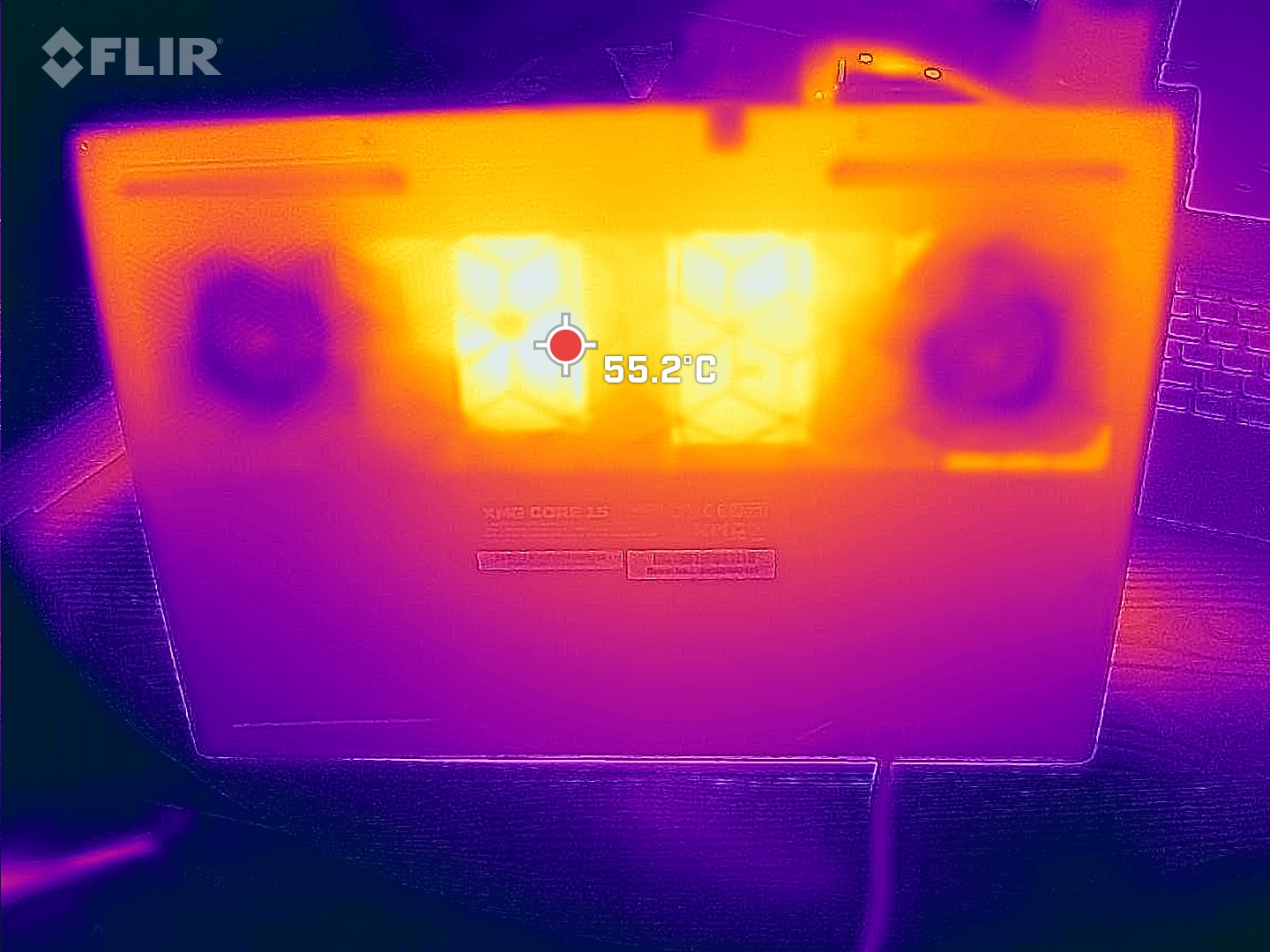 El Core 15 no se mantiene realmente frío, ya que la carcasa metálica se calienta bastante hasta convertirse en una fuente adicional de calor, especialmente en la base de la unidad. Los reposamanos permanecen comparativamente fríos.