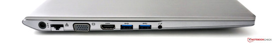 La posición de los puertos así como su distribución están bien pensadas. El tercio frontal de ambos laterales permanece sin uso, lo que es una opción de diseño favorable desde el punto de vista ergonómico (ej. cuando se conecta un ratón externo). También, los puertos mas usados se sitúan en el lado izquierdo, lo que está bien para los diestros (y no tanto para los zurdos).