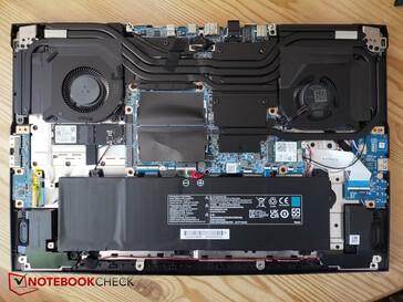 Tulpar ha instalado una batería de 62 Wh en la carcasa de 17 pulgadas. Con respecto al tamaño del portátil, no es mucho para un jugador y se nota claramente que el fabricante ha ahorrado un poco de dinero, aunque el XMG Apex está equipado con la misma y el MSI Katana incluso tiene que conformarse con sólo 54 Wh. Los otros tres competidores están equipados con baterías más grandes que oscilan entre los 73 y los 90 Wh.