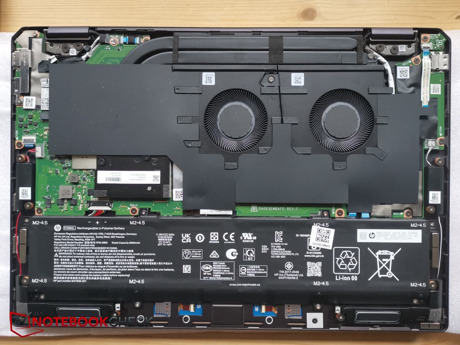 HP ha instalado una batería de 83 Wh en el dispositivo, al igual que su predecesor. Sin embargo, el nuevo modelo dura más gracias a su mayor eficiencia. Al navegar por Internet, medimos valores de entre 8 horas con el brillo máximo e incluso casi 12 horas con el brillo reducido a 150 nits. La película codificada en H.264 Big Buck Bunny pudo verse en bucle continuo durante casi 14,5 horas con el brillo reducido (altavoces apagados). En definitiva, una excelente duración de la batería.