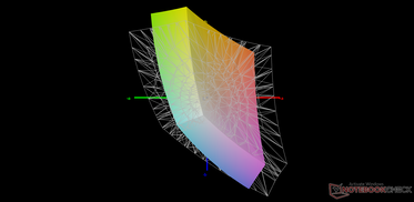 Las mediciones del colorímetro X-Rite revelan que la temperatura del color está ligeramente en el lado frío. Una vez calibrados correctamente, los valores medios de la escala de grises y del DeltaE de ColorChecker mejorarían de 4,5 a 2,3 y de 6,2 a 5,4, respectivamente. Los colores siguen siendo cada vez más imprecisos a niveles de saturación más altos debido al limitado espacio de color del panel.