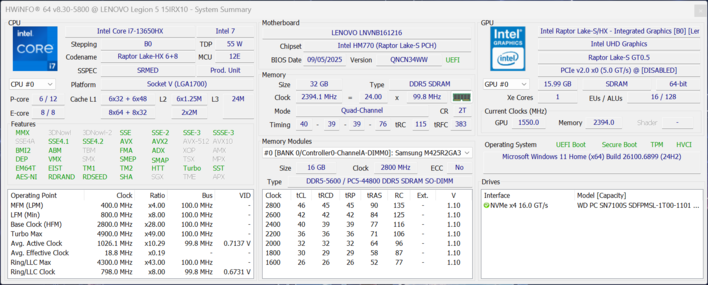 Ya hemos realizado una análisis exhaustivo del Lenovo Legion 5 15 con el AMD Ryzen 7 260 y la GPU RTX 5060 para portátiles. Ahora, echemos un vistazo a la variante con el Intel Core i7-13650HX emparejado con la RTX 5070 móvil. En este artículo, nos centramos principalmente en el rendimiento; para todos los demás detalles sobre el chasis y la pantalla OLED, consulte nuestro análisis de el modelo AMD.