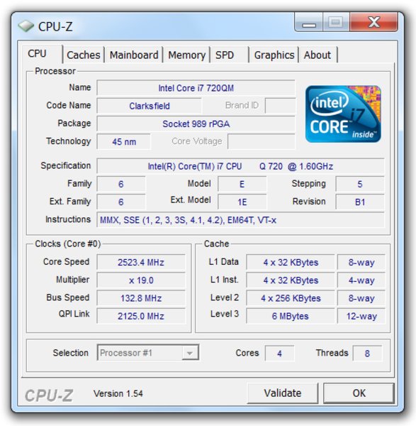 Considerando la base del MSI GX740 podría ser redundante referirse a las características de la CPU Intel Core i7-720QM Quad-Core y la ATI Mobility Radeon HD5870.Lo que importa de ellas es su rendimiento en juegos frente a otros dispositivos para juegos. Pretendiendo ser más completos hay que decir un par de cosas acerca del equipamento. El 720QM es la CPU menor de la actual paleta Intel "Clarksfield" y funciona a 1.6 GHz. Gracias el modo turbo, la CPU puede sin embargo overclockear nucleos individuales hasta 2.8 GHz. Ocurre de forma dinámica dependiendo del rendimiento exigido y de la refrigeración disponible. Los jugones por tanto conseguirán un rendimiento óptimo o bien a través de una alta velocidad de reloj o a través de la arquitectura multinucleo.
