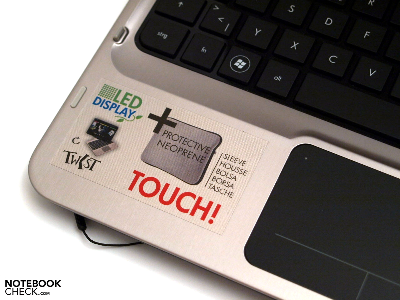 Nos gustó la apariencia del TouchSmart tm2: los elementos de aluminio con patrones grabados en la tapa y la parte superior de la unidad base contrastan de forma agradable con los elementos de plástico negro.