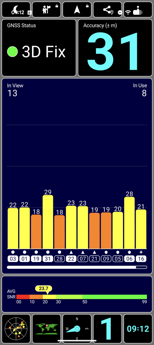 El Pixel 10 Pro utiliza GNSS de doble banda para el posicionamiento, que admite todos los sistemas de satélites globales. La satelización tarda un tiempo relativamente largo en interiores y no es especialmente precisa. La recepción en exteriores, en cambio, es rápida y muy precisa.