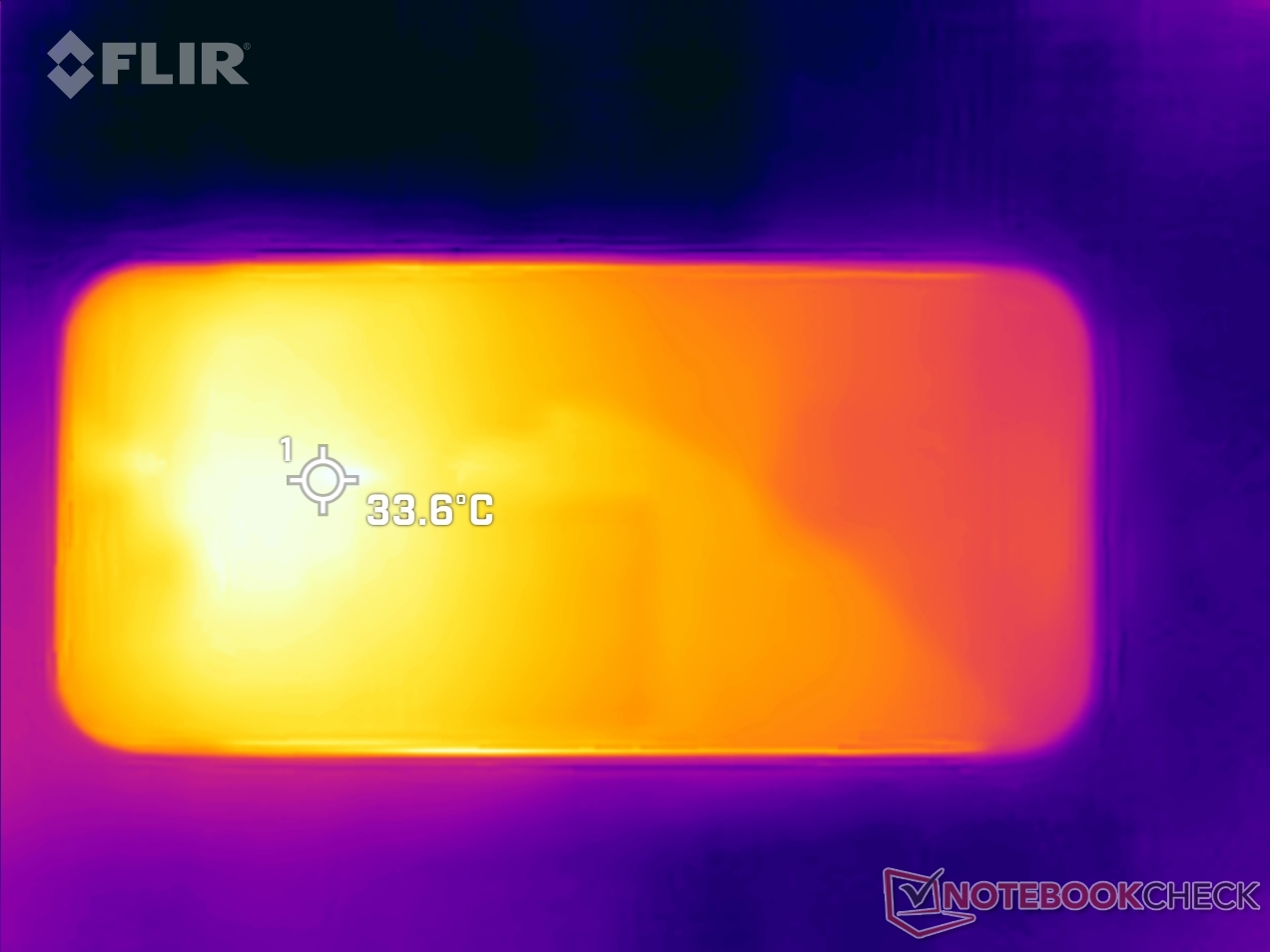 (+) En reposo, la temperatura media de la parte superior es de 30.2 °C / 86# F, frente a la media del dispositivo de 32.9 °C / 91 F.