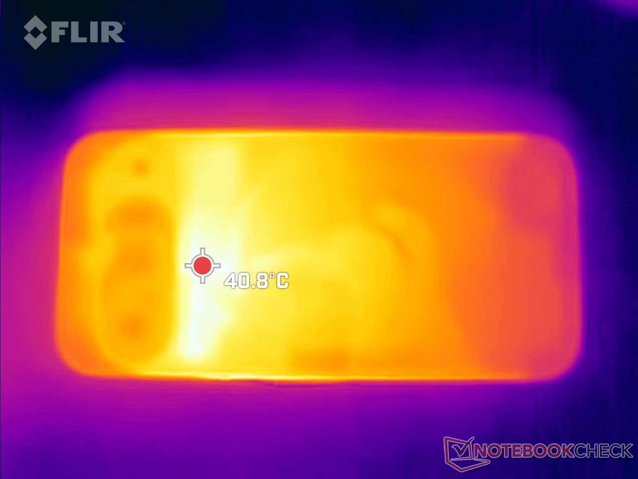 (±) La temperatura máxima en la parte superior es de 40.6 °C / 105 F, frente a la media de 35.2 °C / 95 F, que oscila entre 21.9 y 247 °C para la clase Smartphone.