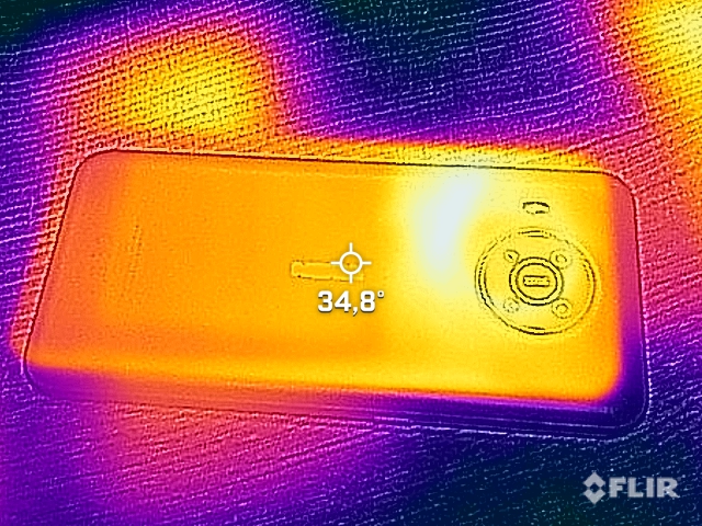 Con un máximo de 41,3 °C (~106 °F), el smartphone se mantiene a temperaturas normales, incluso bajo una carga prolongada. Sin embargo, en los días calurosos, puede resultar un poco incómodo tocar el smartphone después de un uso intenso o guardarlo en el bolsillo.