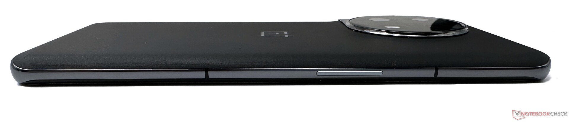 El OnePlus 11 5G está disponible en dos opciones de color: Negro Titán mate (nuestra variante) y Verde Eterno brillante. La superficie mate del Titan Black es un poco resbaladiza, pero es muy resistente a las huellas.