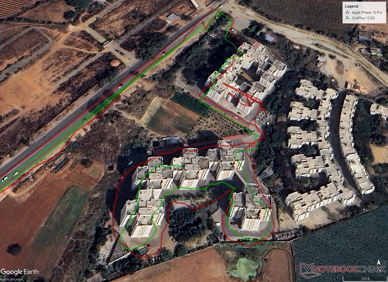 Tanto el Apple iPhone 15 Pro y el OnePlus 12 luchan en áreas con edificios densamente poblados, pero el iPhone 15 Pro generalmente se comporta mejor en la navegación por carretera. El GPS lucha por conseguir un bloqueo rápido en interiores.