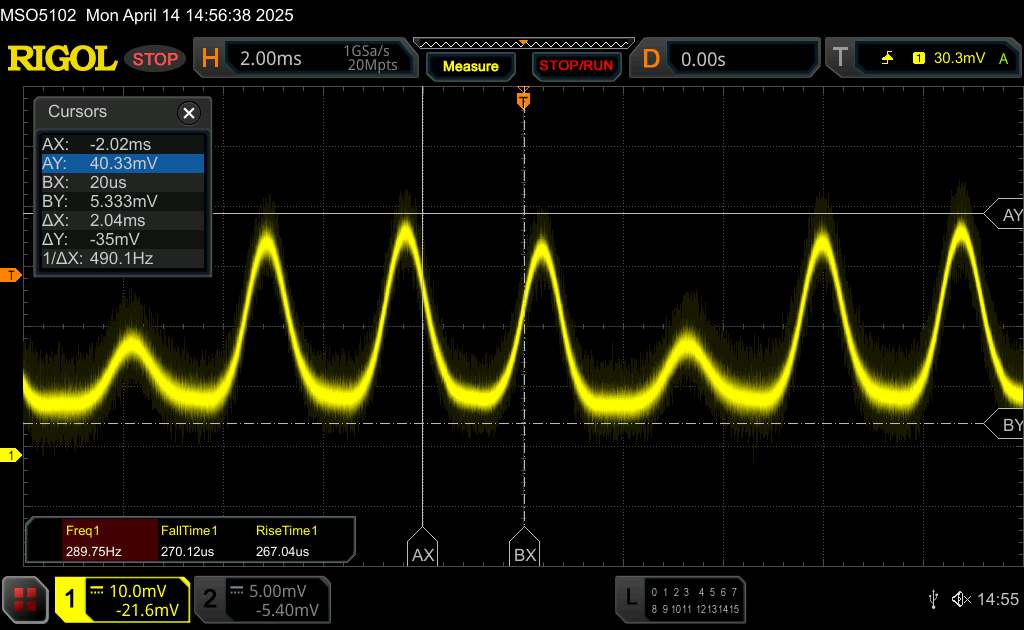 | 2 ms ... subida ↗ y bajada ↘ combinada | ↗ 0.9 ms subida | |