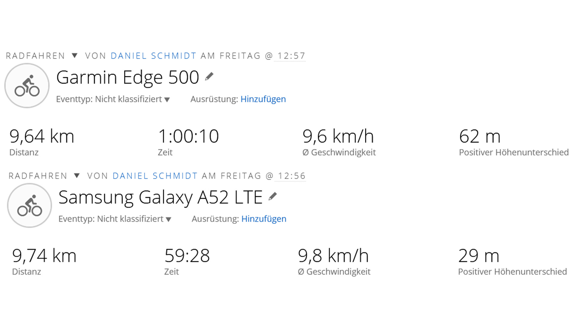 Durante nuestro recorrido obligatorio en bicicleta, el A52 LTE fue ligeramente más preciso en el registro de nuestra ruta que nuestro dispositivo de referencia Garmin Edge 500
